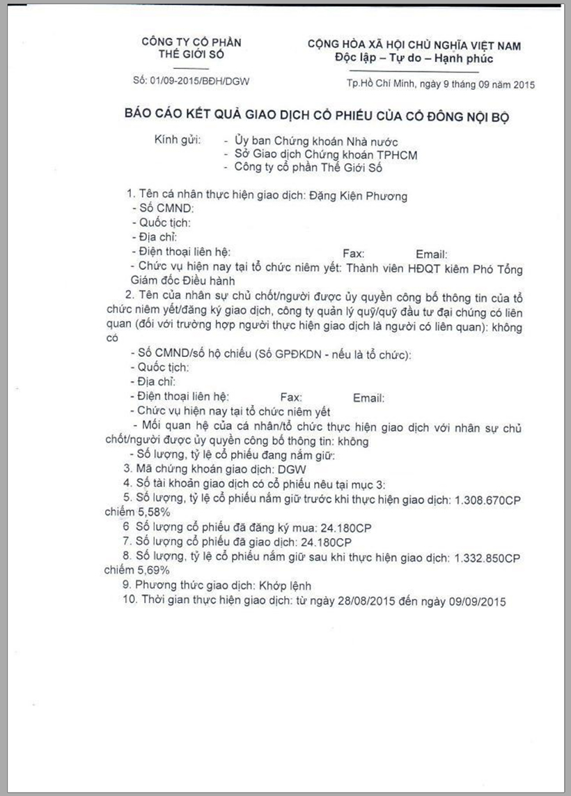 Báo cáo kết quả giao dịch cổ phiếu của chị Kiện Phương