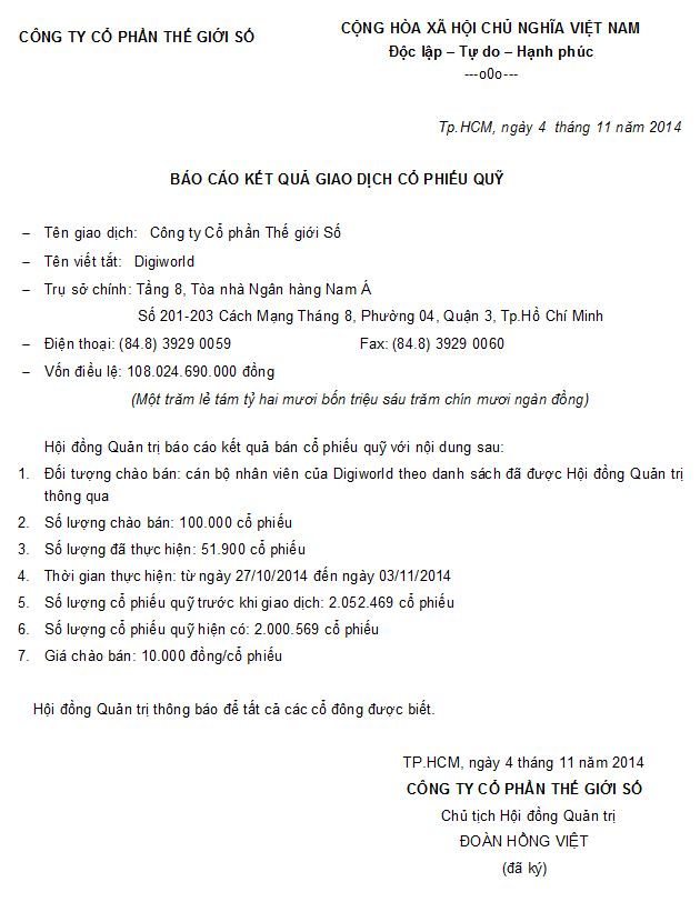 - Tên giao dịch: Công ty Cổ phần Thế Giới Số