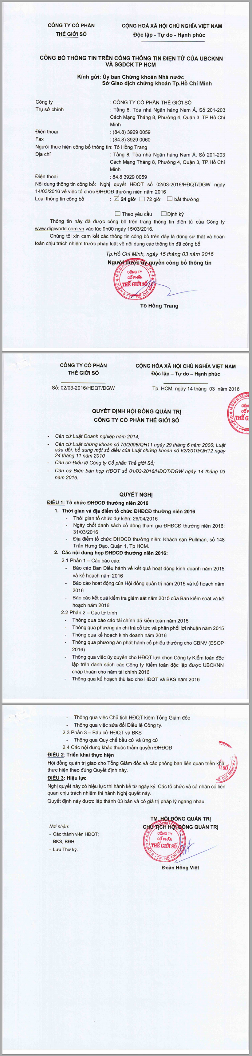 Nghị quyết họp HĐQT lần đầu nhiệm kỳ 2016-2020