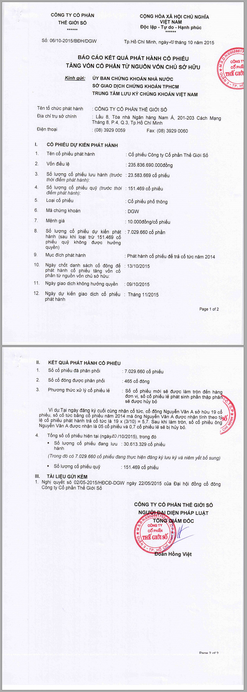 CBTT báo cáo kết quả phát hành cổ phiếu