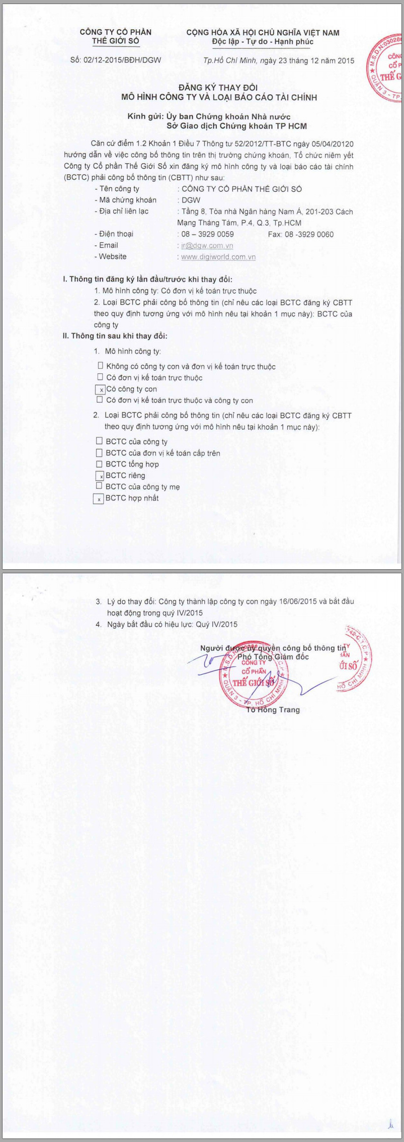 CBTT thay đổi mô hình công ty và loại báo cáo tài chính