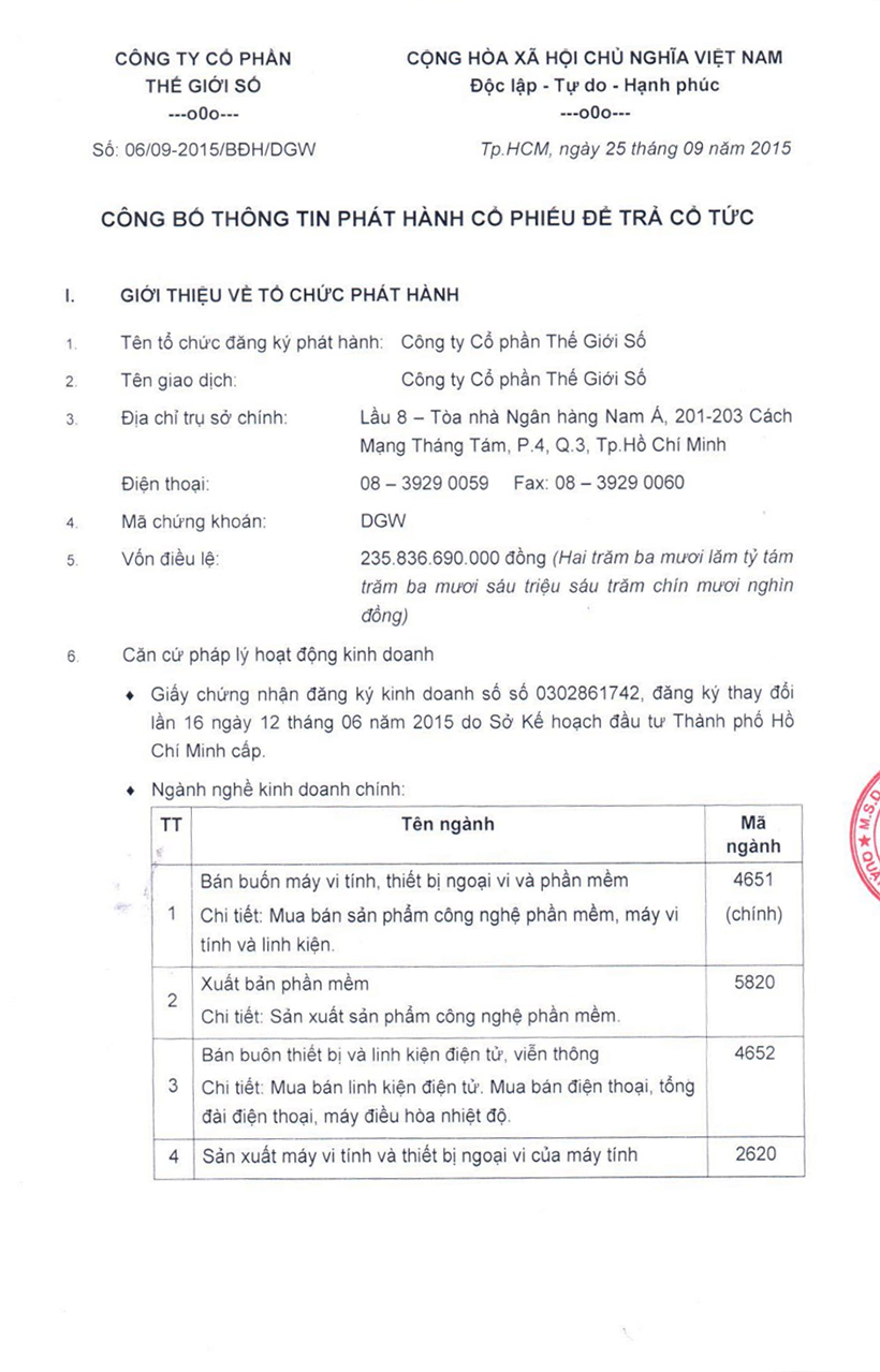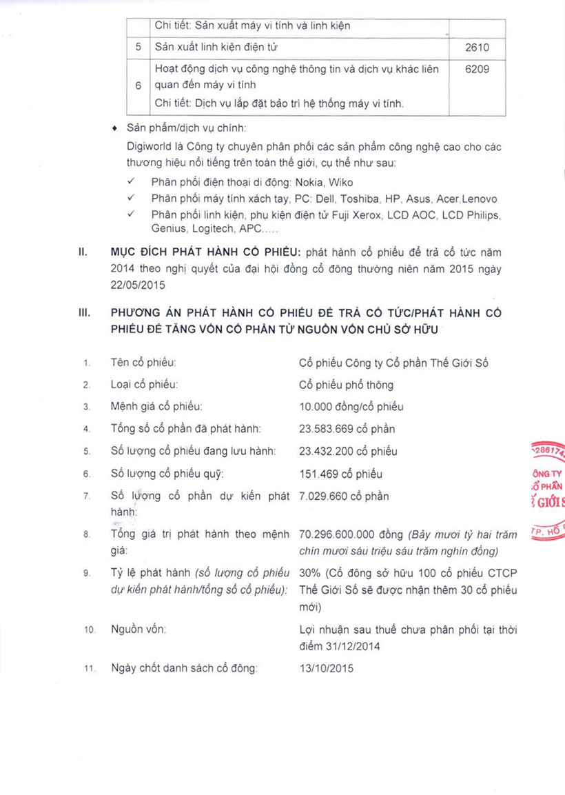 CBTT về việc phát hành cổ phiếu trả cổ tức năm 2014