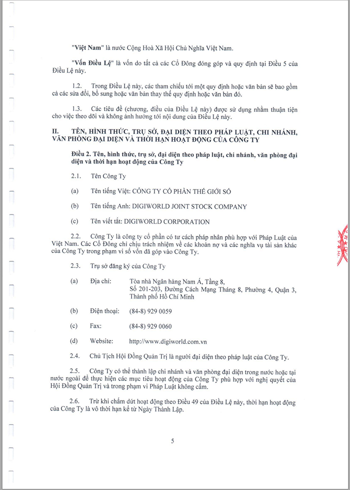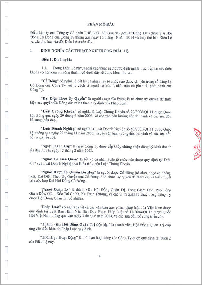 Điều lệ Công Ty Cổ Phần Thế Giới Số