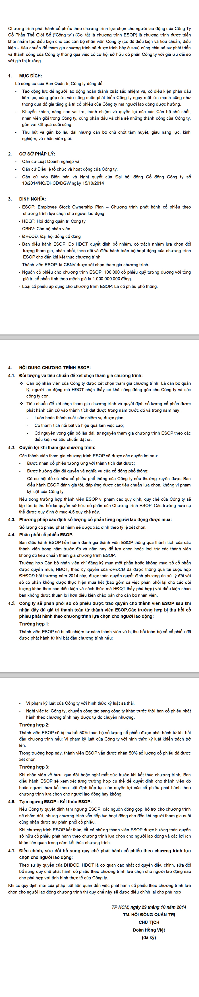 Quy chế thực hiện chương trình bán cổ phiếu ưu đãi (ESOP) cho CBNV Digiworld