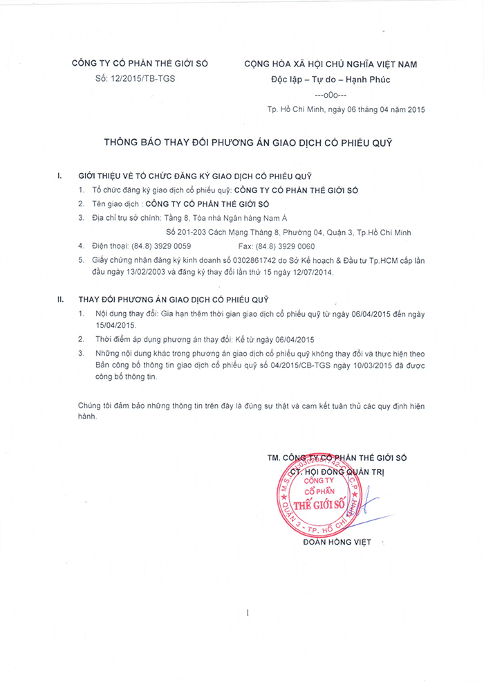 Thông báo thay đổi phương án giao dịch cổ phiếu quỹ